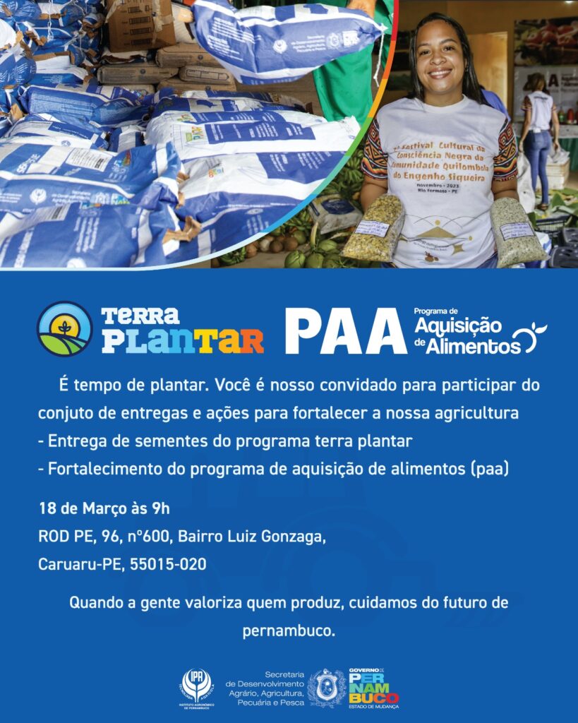Governo de Pernambuco realiza ações do PAA e entrega de sementes em Caruaru