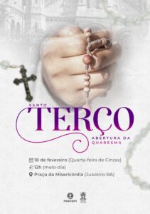 Abertura da Quaresma: Fiéis são convocados para rezar o Terço ao meio-dia na Praça da Misericórdia em Juazeiro (BA) na Quarta-Feira de Cinzas, dia 18 de fevereiro