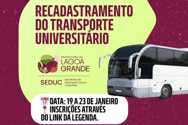 Seduc convoca universitários de Lagoa Grande para recadastramento e cadastramento do transporte; veja as datas
