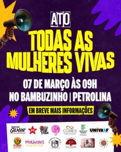 Movimentos sociais de luta por direitos das mulheres realizam ato “Todas as Mulheres Vivas” em Petrolina no dia 7 de março