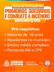 A Prefeitura de Senhor do Bonfim prorrogou até a próxima terça-feira (3) o prazo de inscrições para o Curso de Formação em Primeiros Socorros e Combate a Incêndio – Brigadistas. A iniciativa é realizada por meio da Secretaria Municipal de Administração, com apoio do 9º Grupamento de Bombeiros Militar da Bahia.