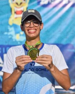 Nas águas do Rio São Francisco, o jovem atleta Eduardo Libório também protagonizou um momento especial ao conquistar o primeiro lugar no Circuito de Maratonas Aquáticas Velho Chico, na categoria de 3,5 km. Considerado um dos prodígios da modalidade, Eduardo confirmou seu talento nas águas e segue entre a quarta e quinta colocação no ranking do Campeonato Brasileiro de Águas Abertas referente a 2025.